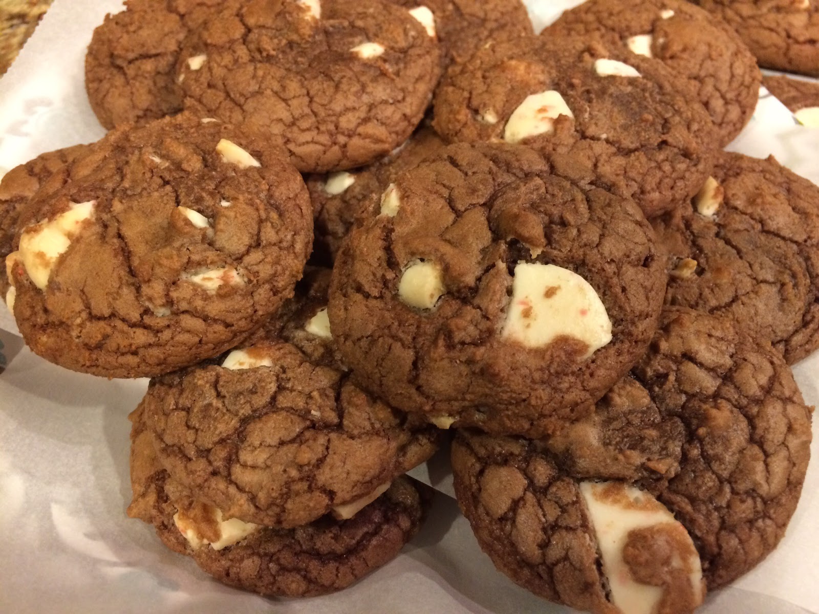 Step 1 - Mix all of the ingredients together except the white chocolate peppermint pieces. Pre-heat your over to 375 degrees and line a baking sheet with parchment paper. Once the ingredients come together finally add your white chocolate pieces and mix to incorporate.